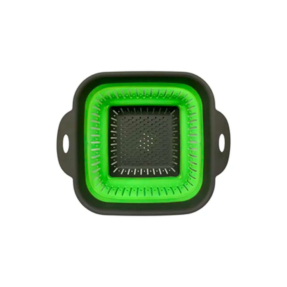 El colador plegable cuadrado de silicona es ideal para escurrir frutas, verduras, pastas y más, ocupando el mínimo espacio posible. Su diseño retráctil y flexible permite plegarlo fácilmente para guardarlo en cajones o alacenas sin esfuerzo.