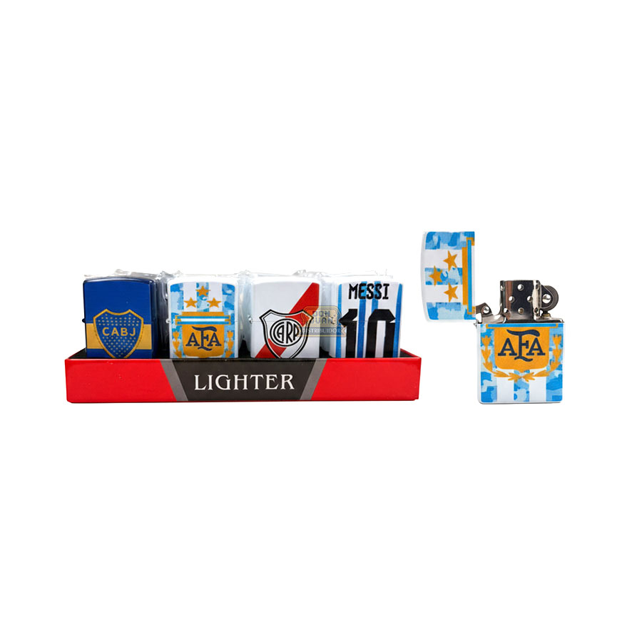 El Encendedor a Bencina con Diseño de Fútbol combina el formato clásico tipo flip-top con estampas inspiradas en clubes y selecciones. Fabricado en metal resistente, es recargable, duradero y pensado para un uso prolongado.