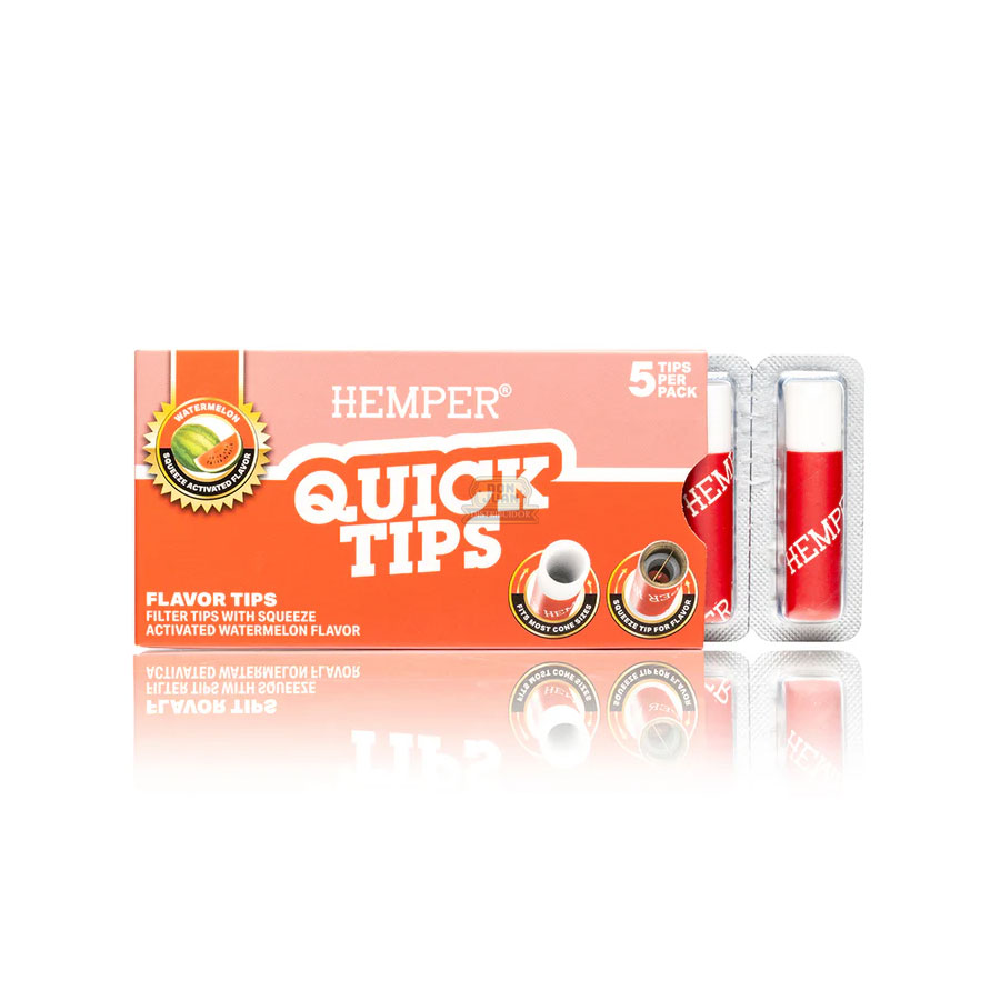 Los Hemper Quick Tips sabor Watermelon llevan tus sesiones a otro nivel con un toque dulce, suave y frutal. Cada tip incluye una perla de sabor activable, que al presionarla libera terpenos con aroma y gusto a banana, logrando una experiencia mucho más agradable y aromática.
