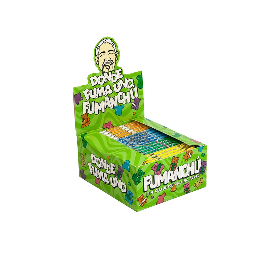 El Fumanchú Celulosa Regular se presenta en un display colorido de 24 unidades, ideal para puntos de venta con alta circulación. Su papel está fabricado en celulosa transparente, lo que le ofrece una combustión pareja y excelente resistencia sin perder flexibilidad.