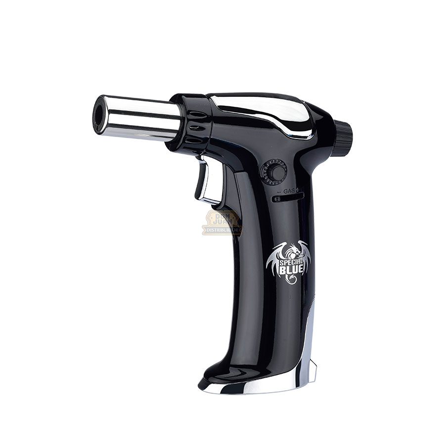 Envuelto en dos elegantes tonos metálicos, esta antorcha de tamaño mediano tiene un quemador con una única salida, el ultron black es de un color negro espejado con detalles en metal, destacado por su liviandad y manipulación fácil, junto con su regulador de llama.
